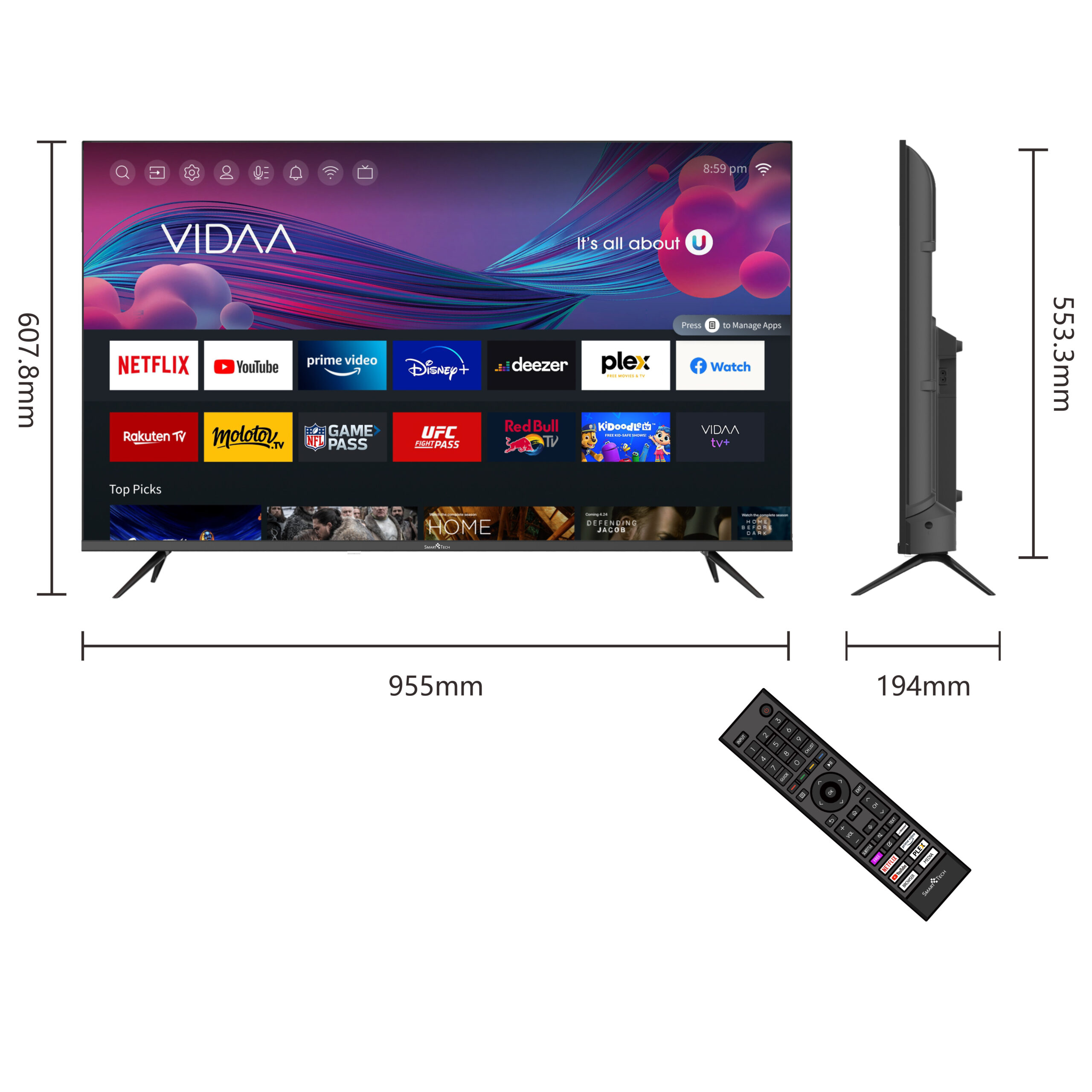 TV LED 43′ (109 cm) ULTRA HD VIDAA, 43UV10V1 | 5999862467036-1