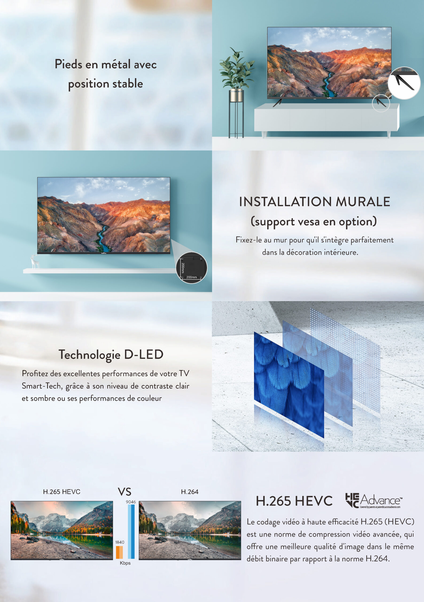 • TV Smart Tech 40" (100 cm); Screen resolution: UltraHD, 3840(H) × 2160(V), Modèle 43UV10V1