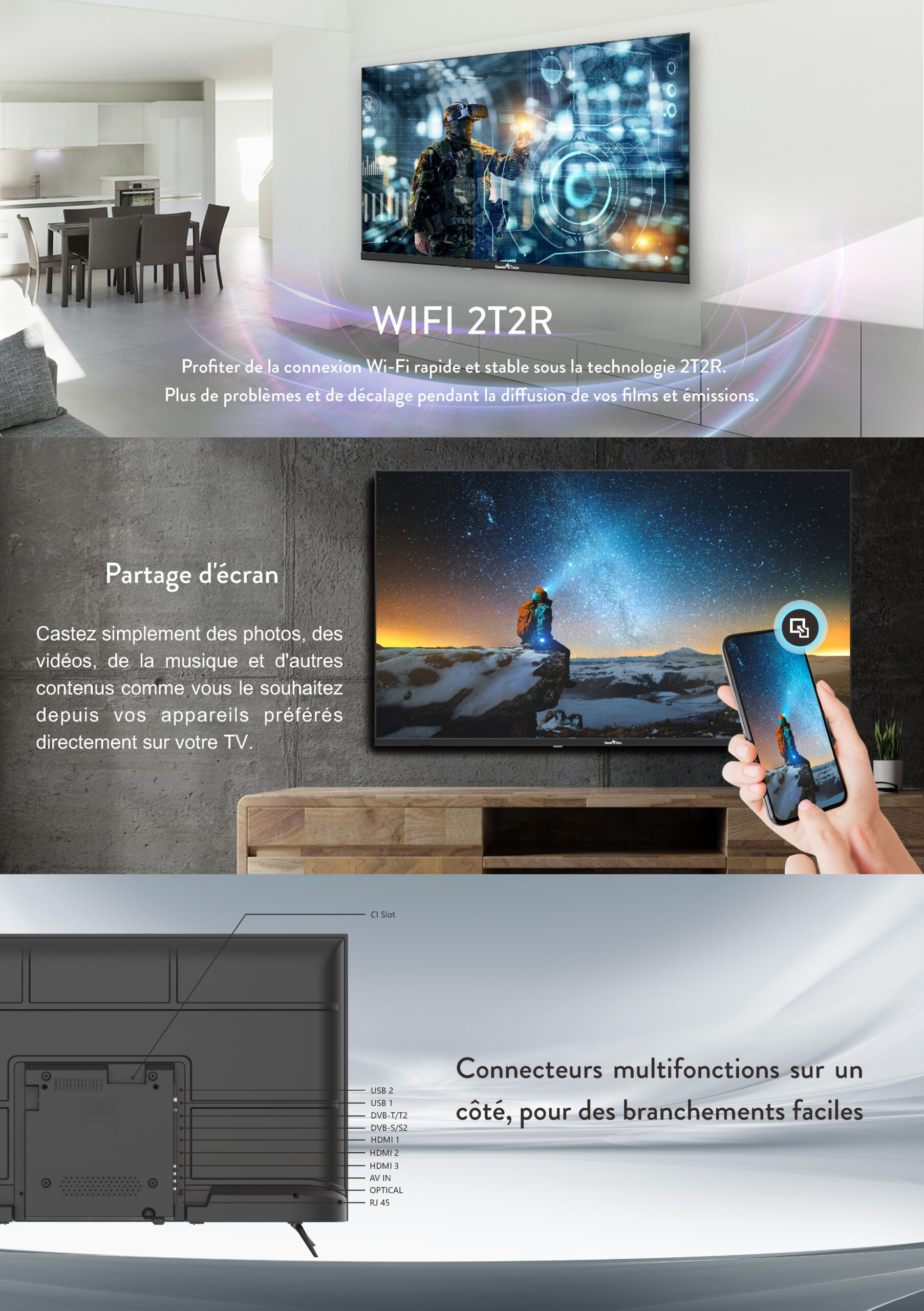 • 3xHDMI - 2xUSB - Mode Hotel