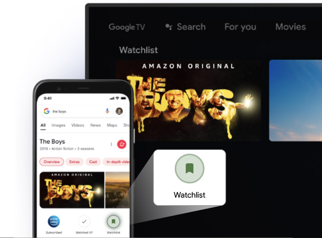Lorsque vous voyez une émission ou un film intéressant, ajoutez-le à votre liste pour garder une trace de vos nouvelles découvertes. Vous pouvez même ajouter à votre liste depuis votre téléphone ou votre ordinateur portable via la recherche Google sur n’importe quel navigateur.