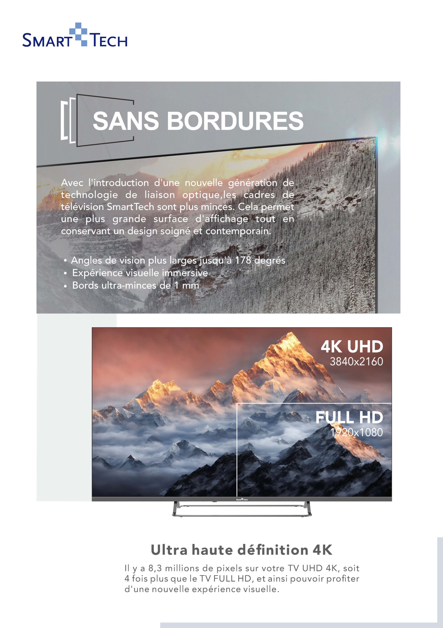 SMART TECH TV offers you the best image definition. All high definition images can be displayed on a 3840×2160 resolution screen.