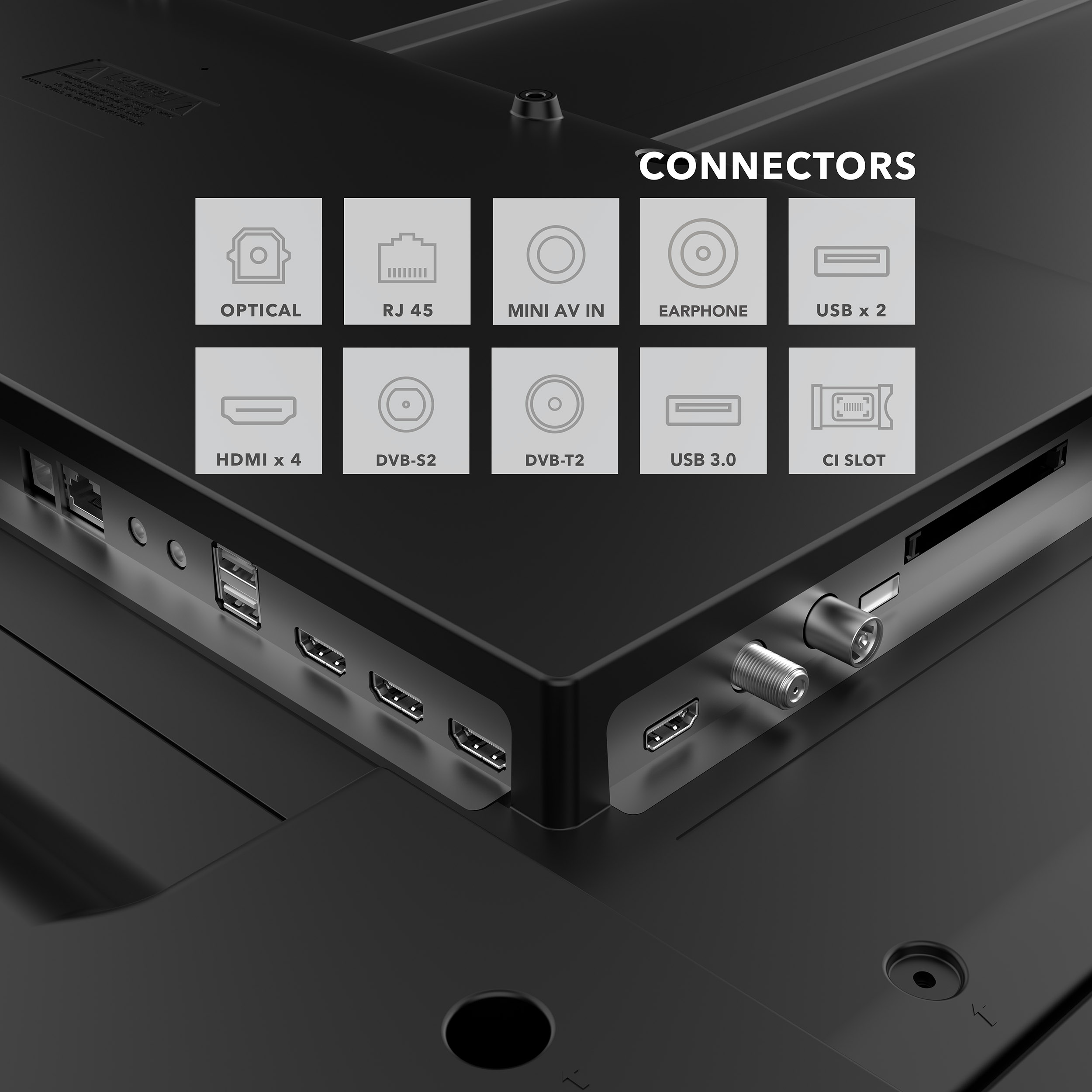 • Connectiques: 2 ports USB, 4 ports HDMI 2.1, Ethernet, WIFI, Bluetooth, CI+, 1 Port Optique
